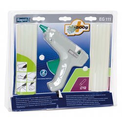 Blister promotionnel comprenant 1 pistolet à colle EG 111 + 500 g de colle, diamètre 12mm, longueur 190mm, transparente